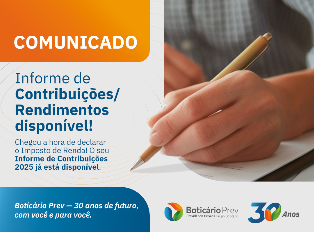 Está chegando o prazo para o envio da Declaração Anual do Imposto de Renda. E o Informe de Contribuições/Rendimentos 2025 já está disponível na Área do Participante.